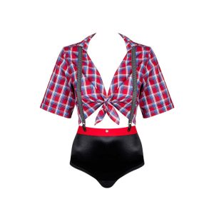 Um lindo traje composto por camisa xadrez e calcinha
